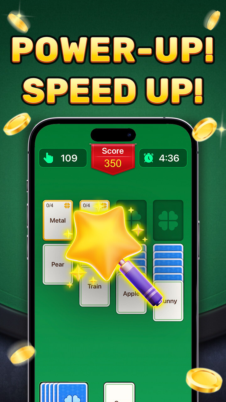 In our game, the traditional cards are replaced by word cards. You need to put the cards with the same category to the fundation ASAP. This is a game that tests your strategy and skill.